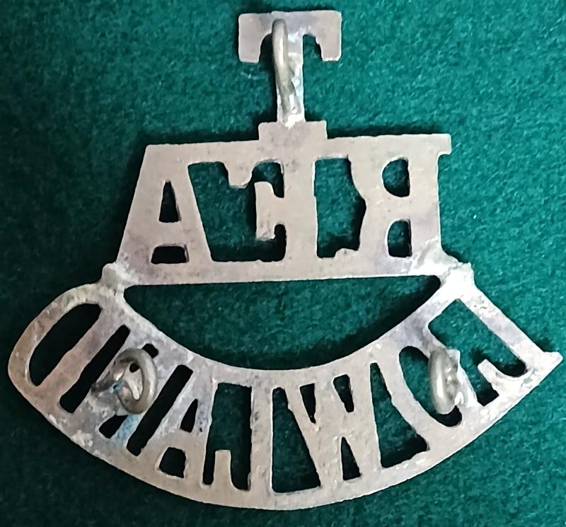 . Brass shoulder title T / RFA / Lowland. Worn by various Scottish Batteries in the Royal Field Artillery Lowland Division. Westlake 624