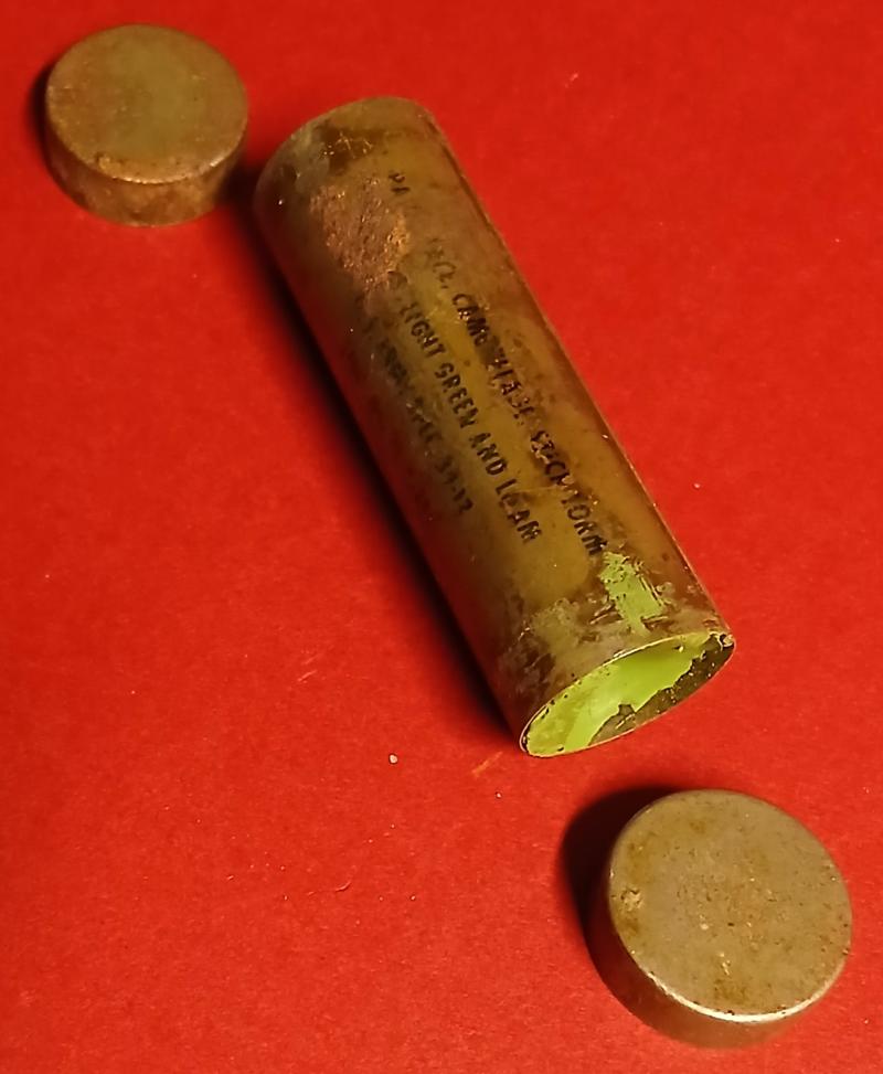 . WW2 American paratrooper camouflage face paint. in tin of issue. Found in Normandy France. (no NATO stock number)