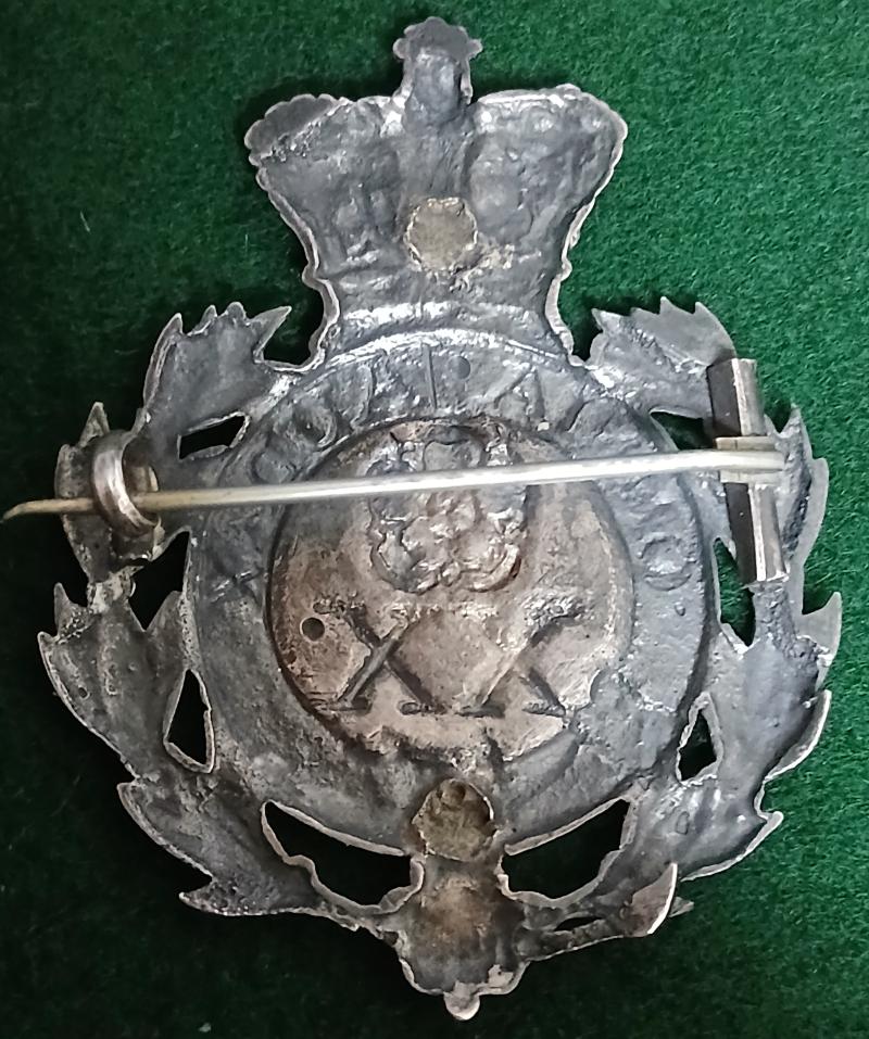 . 1st Battalion. Officer’s pagri badge silver coloured metal, a crowned strap, ‘Omnia Audax’ in the centre the rose over ‘XX’, attendant laurel sprays, Converted to pin back, c1881-1900,