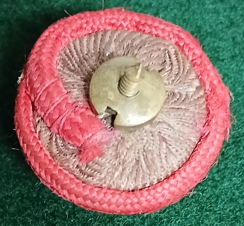 . Officers Red cap Boss Badge. With silver left facing bugle/horn. Diameter: 28mm