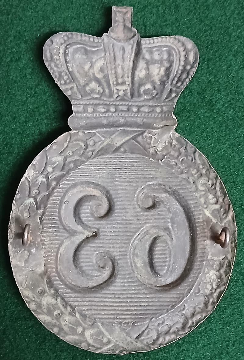 . THE WEST SUFFOLK ALBERT PATTERN SHAKO PLATE 1844-1855 CRIMEA WAR PERIOD OLD REPAIR TO CROWN RH SIDE NEAR PERFECT PLATE
