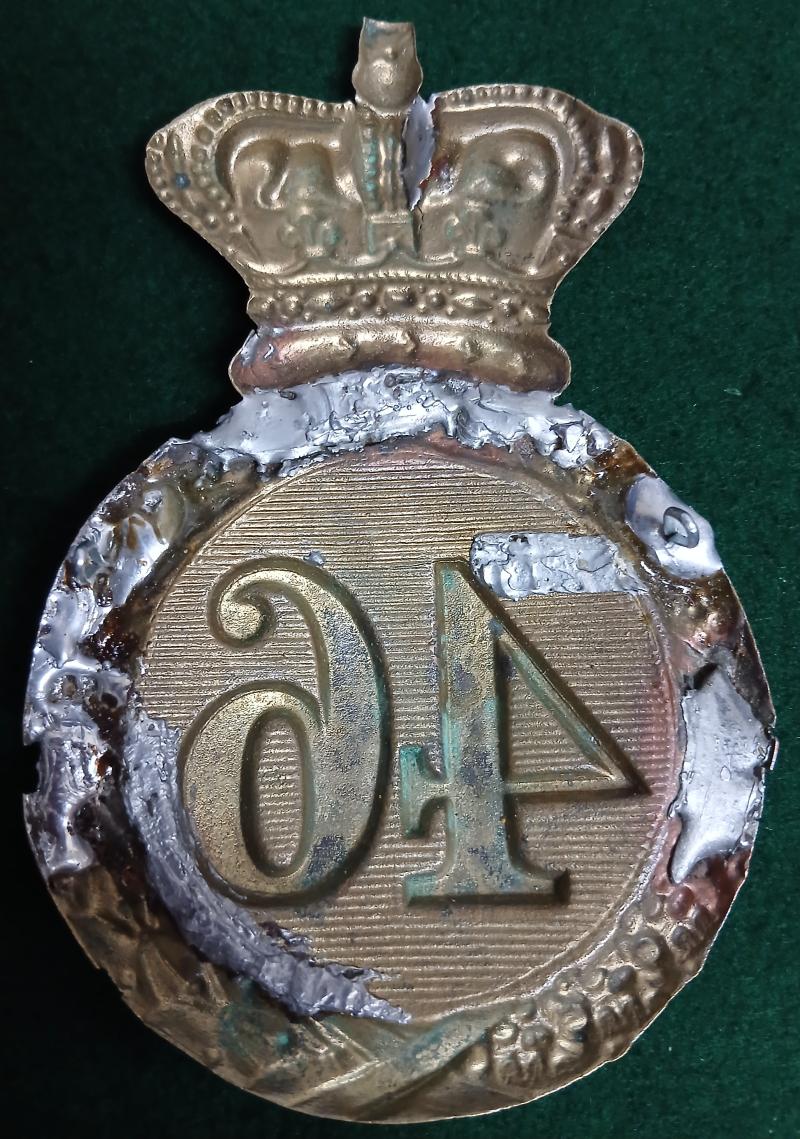 . THE SOUTH DEVONS ALBERT PATTERN SHAKO PLATE 1844-1855 CRIMEA PERIOD 1852 OLD REPAIR TO CROWN.RELUGED AND OLD LUG POSITION REPAIRED