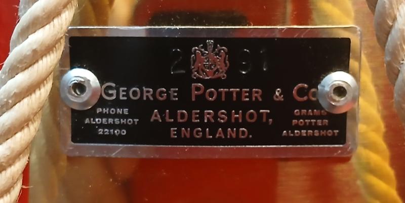 Blue body which supports the red white & blue painted wooden rims. The decoration remains bright and clear. brass body.