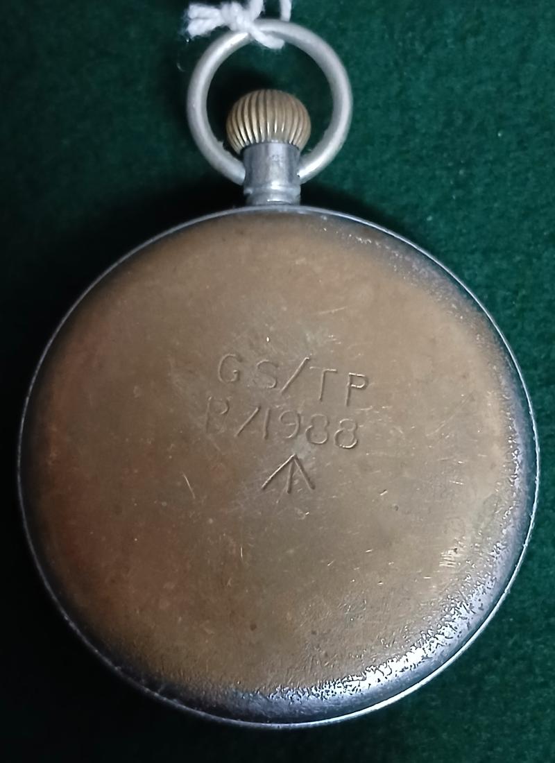 These watches were issued to British forces during the late 1930s–1940s and are identifiable by the GS/TP military marking and broad arrow stamp inside the caseback.