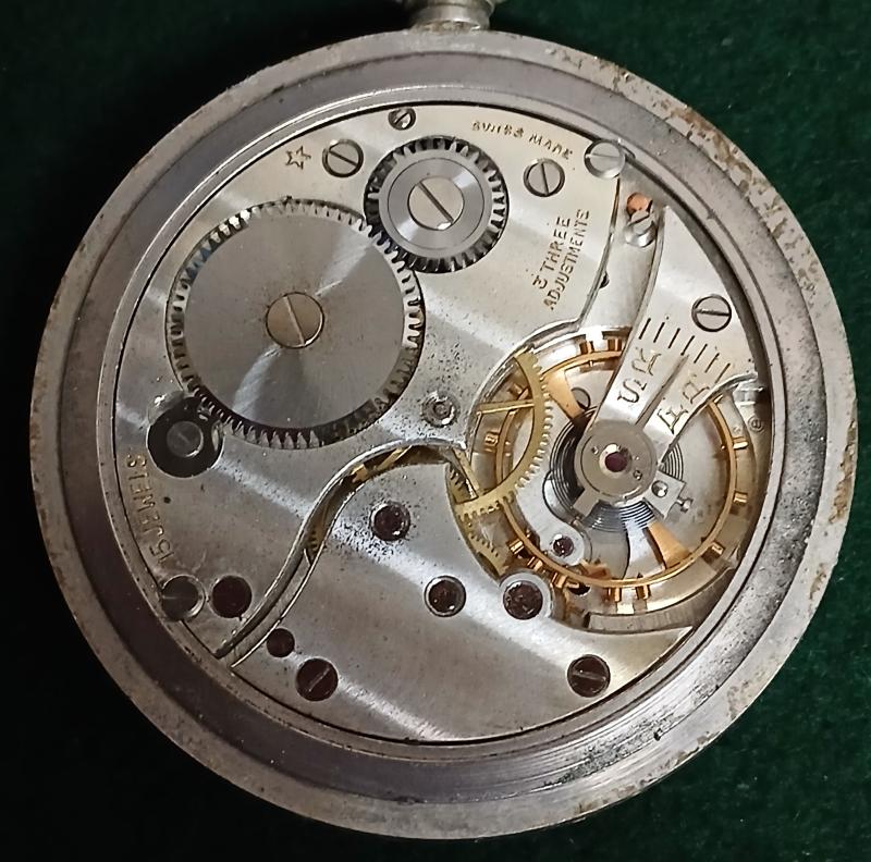 These watches were issued to British forces during the late 1930s–1940s and are identifiable by the GS/TP military marking and broad arrow stamp inside the caseback.