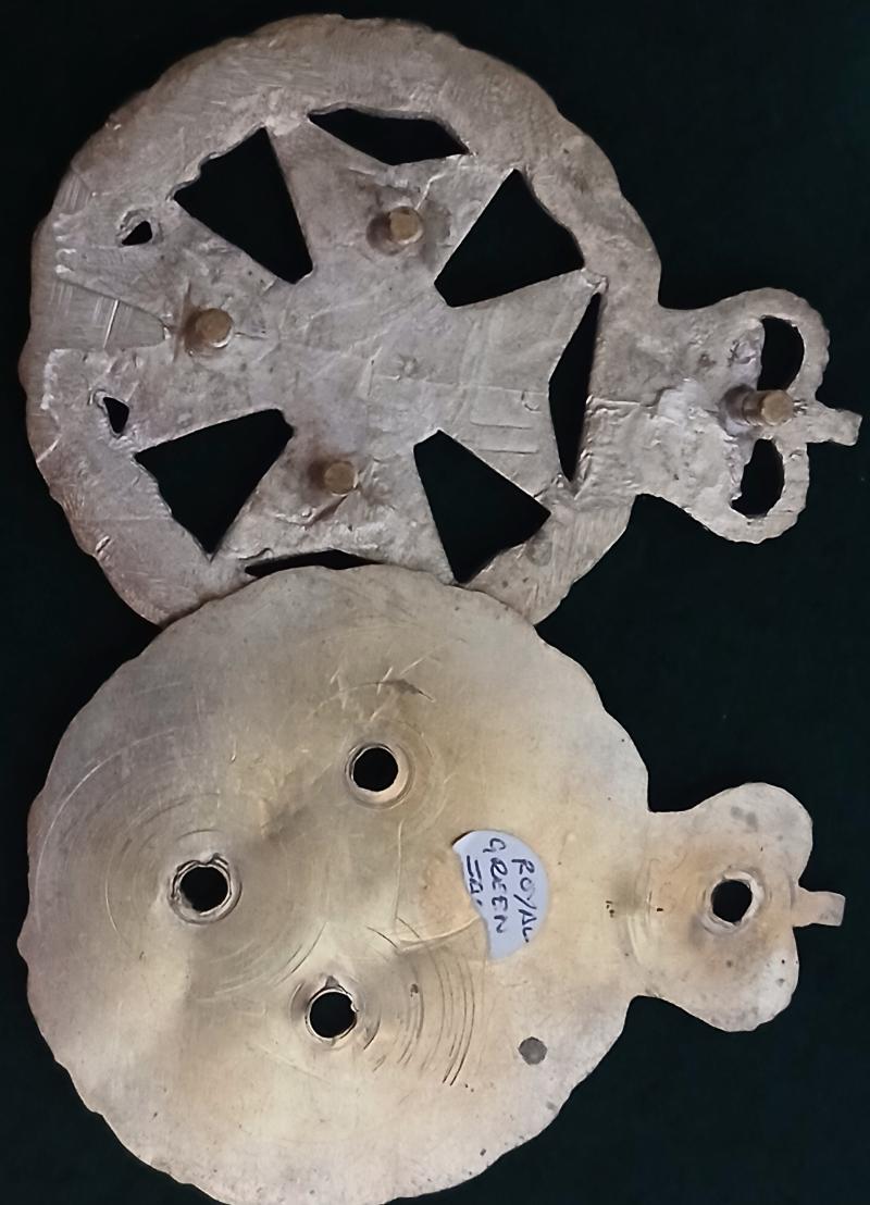 Cast. silvered Queens crowned Maltese cross with numerous honours resting in laurel wreath ; to the centre bugle horn. two honour plates north and south and a naval crown to the foot.
