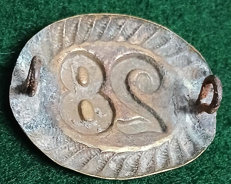 Scarce 28th (North Gloucestershire) Regiment of Foot Other Ranks Back Badge 1830-1855, brass oval roped badge with “28” to centre. Two wire lug fittings to the reverse. Good condition.