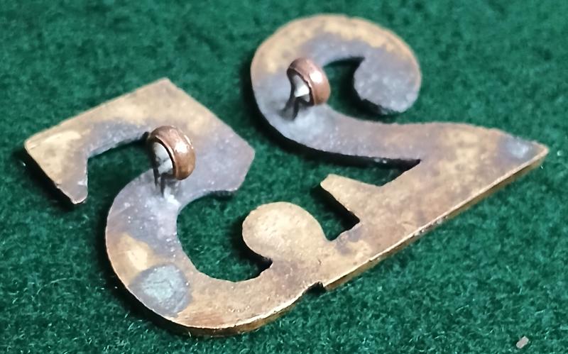 Other Ranks Pork Pie Cap Numerals, good example of the brass one piece numerals worn on the Pork Pie cap, especially during the Crimean War period. Two lug fittings to the reverse.