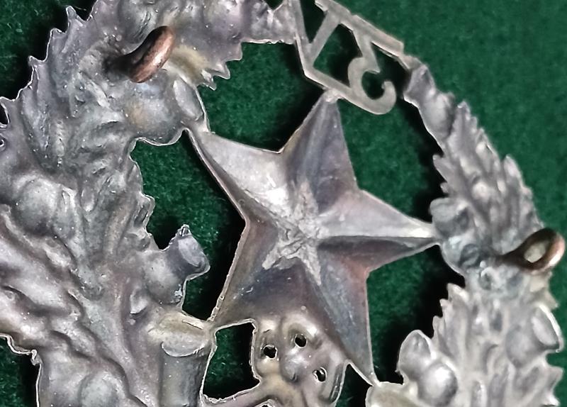 The Mullet and bugle horn surmounted by, " 3 V" within a wreath of thistle. Worn by the 3th. {South Glasgow} Volunteer Battalion of the Cameronians {Scottish Rifles}