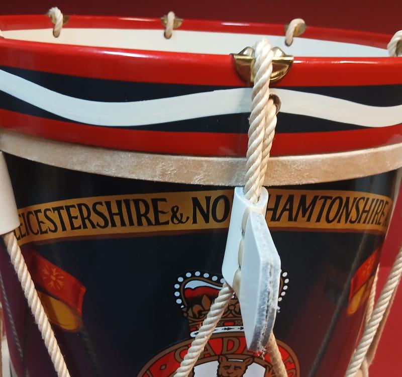 The Drum is a good example of a rope tension Drum. The front emblazoned with a Queens Crown Army Cadet Force device. Encircling this can be found the County title