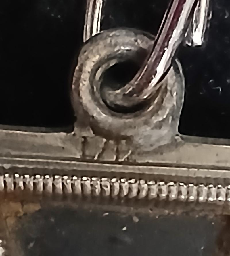 fair worn condition poor black lacquer remaining hints of rust to edges. it has a magnetic core and light age-related toning to the silver frame, which retains an attractive patina. possibly replacement ribbon loop.