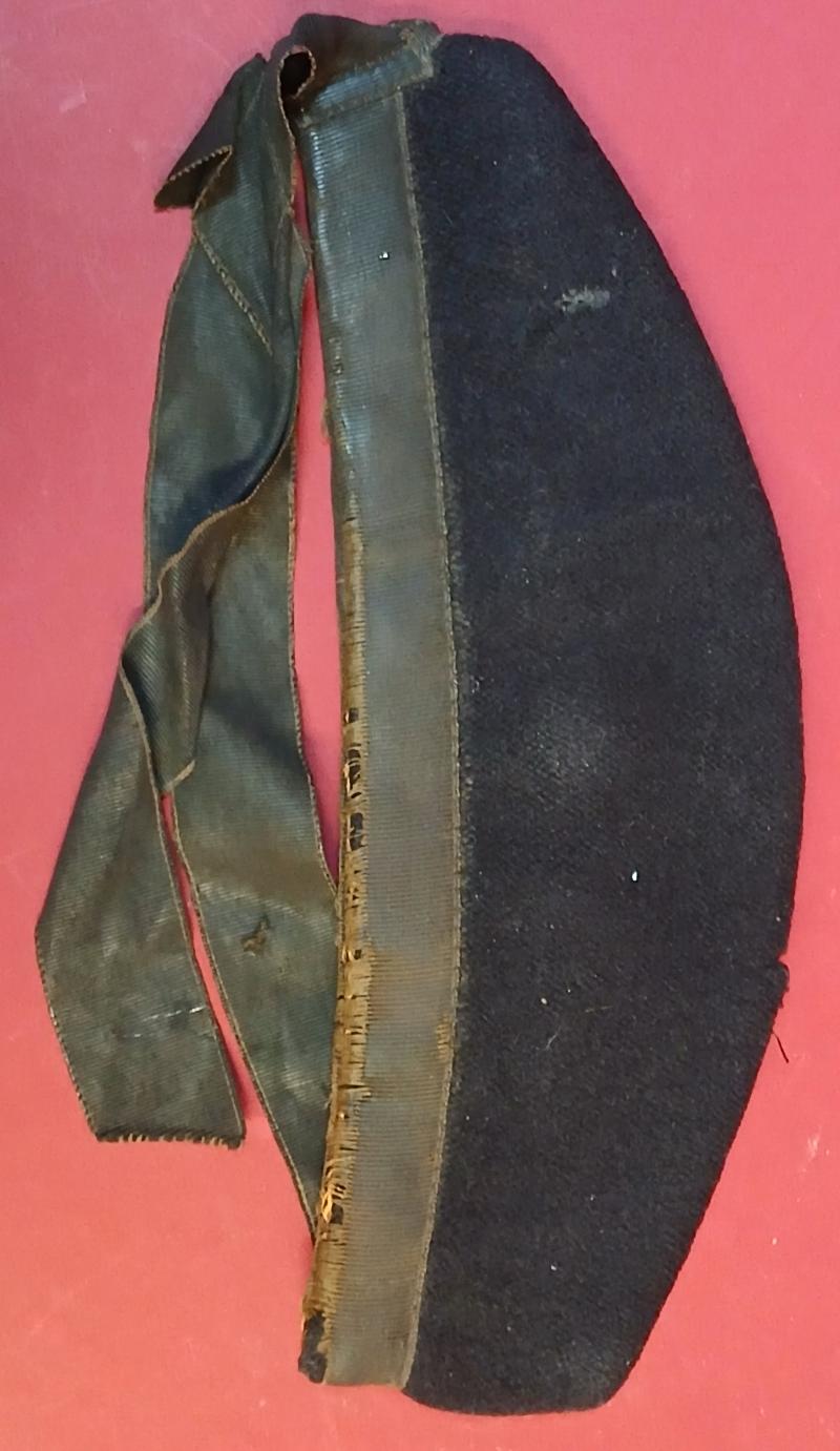 The glengarry hat is of regimental pattern complete with cap badge silk trim (Correct for the period) and silk tails. The interior cotton lining. Looking at the split pin and a genuine badge, I am happy it has always fitted to the hat